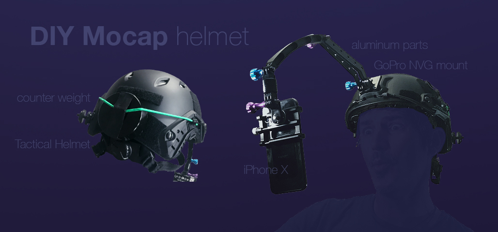 He also recommends an aluminum arm for the phone mount because a plastic one is likely to warp out of shape. He also added a counter weight to the back of the helmet to balance it out. Because he doesn’t have enough phones on his head, he added a second one to record his voice and film the iPhone X so people could see the raw facial capture.