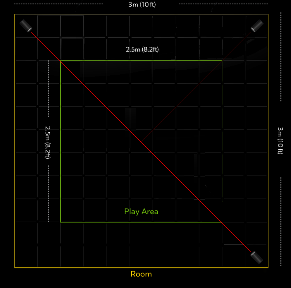 Another tracking setup is to buy just a USB extension cable and position two sensors in opposing corners, similar to the setup of the HTC Vive. This is not officially supported however, and Oculus’ documentation claims it would only give enough usable area for stationary standing, not true room scale VR, but when we’ve tried this arrangement it seemed to get the job done for the most part.