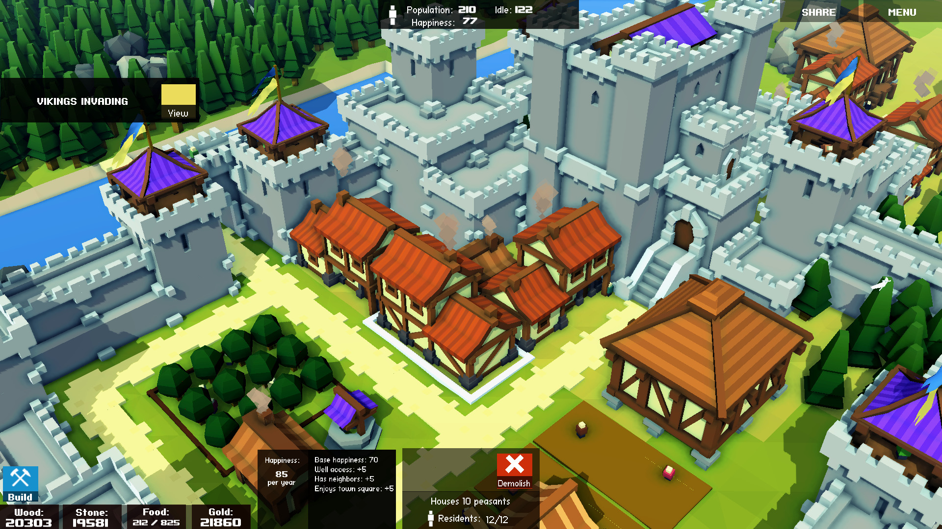 “We both love all the great city builders both old and new (like SimCity, Caeser III, and Banished) and wanted to add our own take to running a little world, specifically where building a castle would be important and meaningful,” said Angstadt in an email interview. “It’s a holistic kingdom experience – you grow your town over many hours, but also build castles to defend it. The bond you build with your town and the threats you must protect your people from are what make the best part – building castles – really meaningful.”