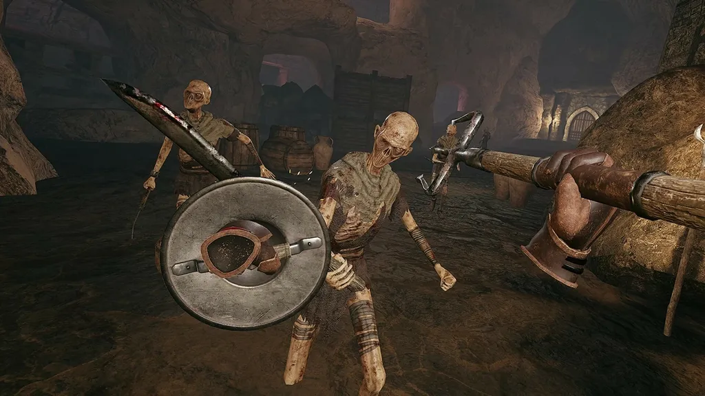 Legendary Tales uses artificial stick-based locomotion and teleportation movement, providing camera options for snap and smooth turning. You can select your dominant hand, while also accounting for hand offset and holster adjustments.