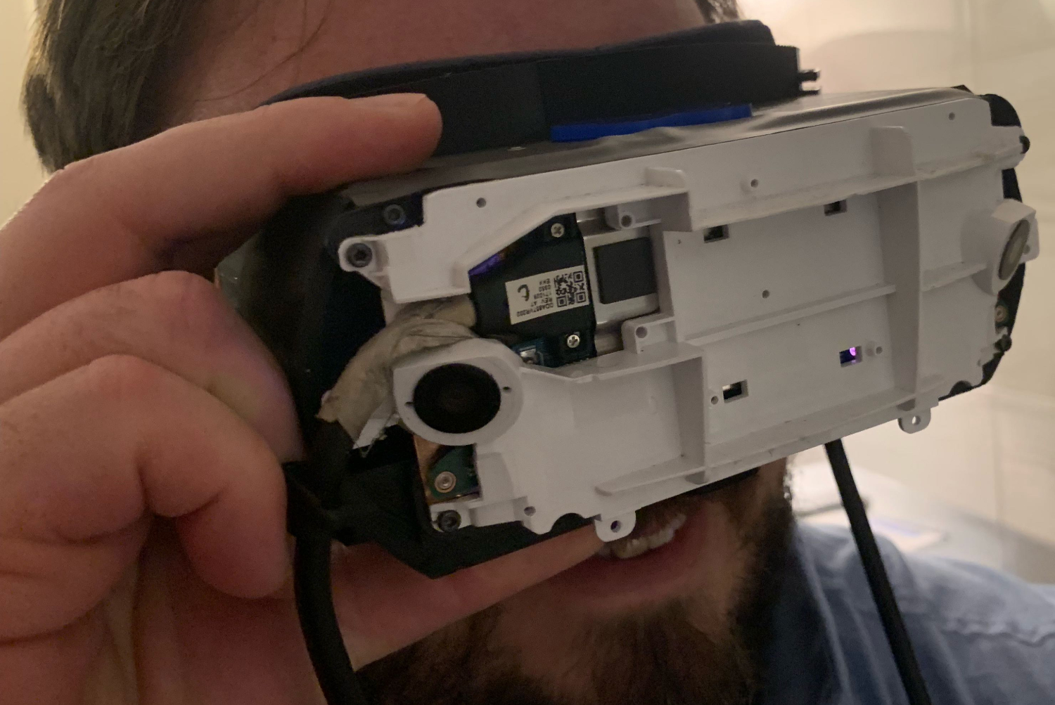 A second “R&D prototype” headset with a much smaller field of view showed silent operation by way of “liquid lenses.” We have photographs of both these systems, with the liquid lens headset below. The “small FOV is not a limitation of the platform, it is only because these specific lenses are publicly available off-the-shelves,” Pierre-Yves Laffont, co-founder and CEO of Lemnis, explained in an email.
