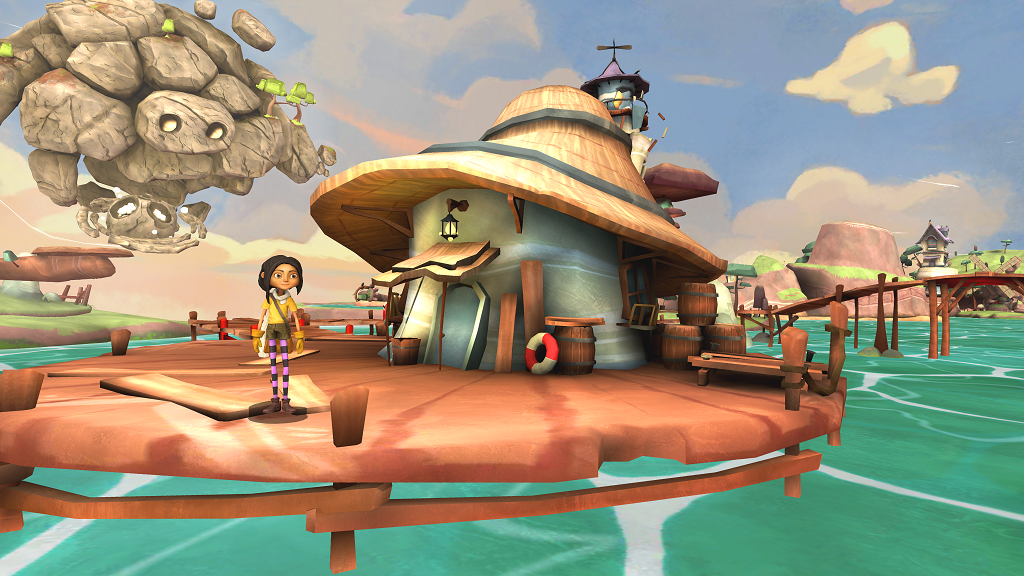 Crucially, Lola And The Giant digs just a little deeper into using VR as a tool to grow a bond between two characters. Here, a young girl called Lola awakens in a mysterious cave, and travels through various worlds in a search of a way back home. She’s accompanied by a giant rock monster that she stumbles upon in the first level. Intimidating though he may be, the giant is the very definition of gentle, calmly murmuring Sim-like phrases to Lola, who replies with more enthusiastic, peppy made up words.