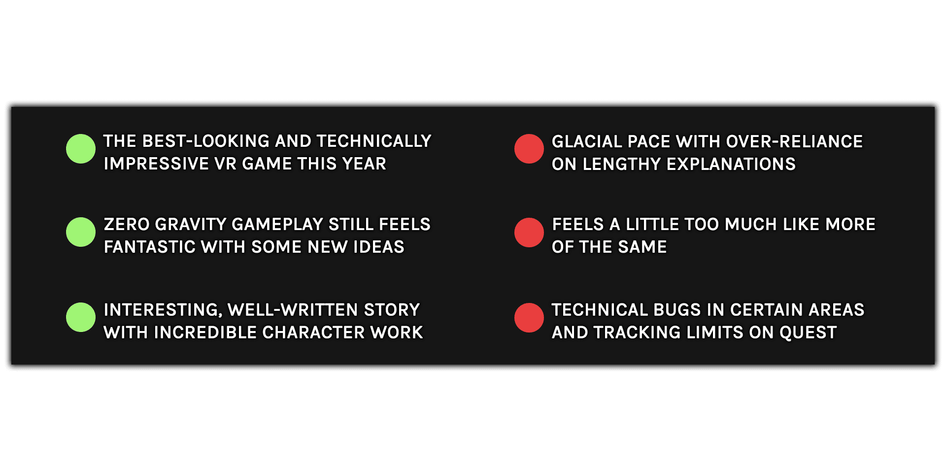 For more on how we arrived at this rating, read our review guidelines. What did you make of our Lone Echo 2 review? Let us know in the comments below!