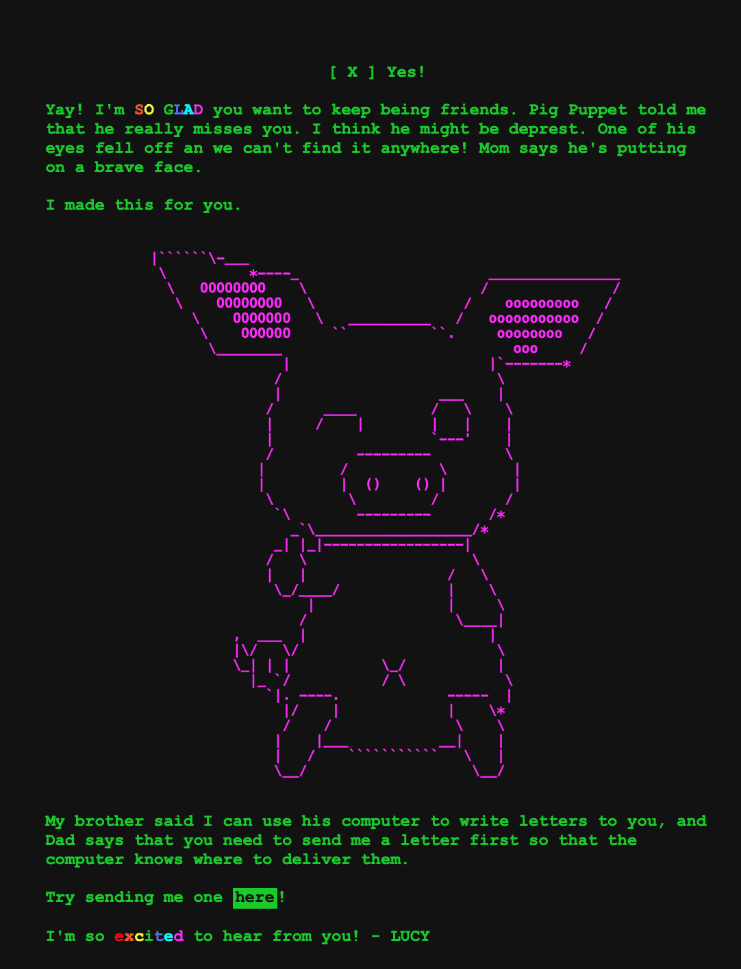 The $9 experience is a told as a roughly 40 minute interactive story based on the book by Neil Gaiman and Dave McKean. We don’t want to spoil it for folks who haven’t seen it yet but people have found themselves deeply impacted by Lucy and her story. According to Fable Studio, when they released an earlier version of the Wolves In The Walls on Oculus Rift they created a website styled like an old bulletin board system which invited people to write letters to Lucy. They say they’ve received thousands of letters to her “and it showed that people wanted to continue to interact,” Fable co-founder Edward Saatchi wrote in an email.