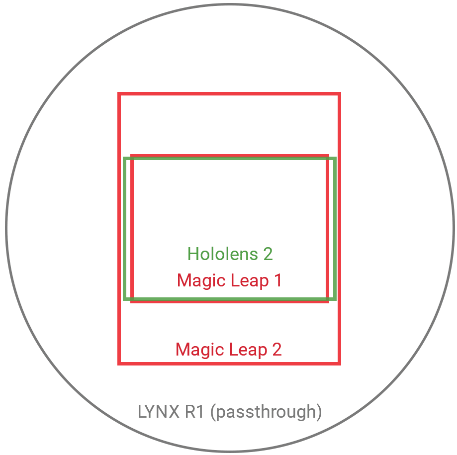 If we assume the aspect ratio shared in the October tease is accurate, that would mean a horizontal field of view of roughly 45 degrees and vertical field of view of roughly 55 degrees. This is significantly narrower than opaque passthrough headsets like LYNX R1, but much taller than competing seethrough headsets like HoloLens 2.