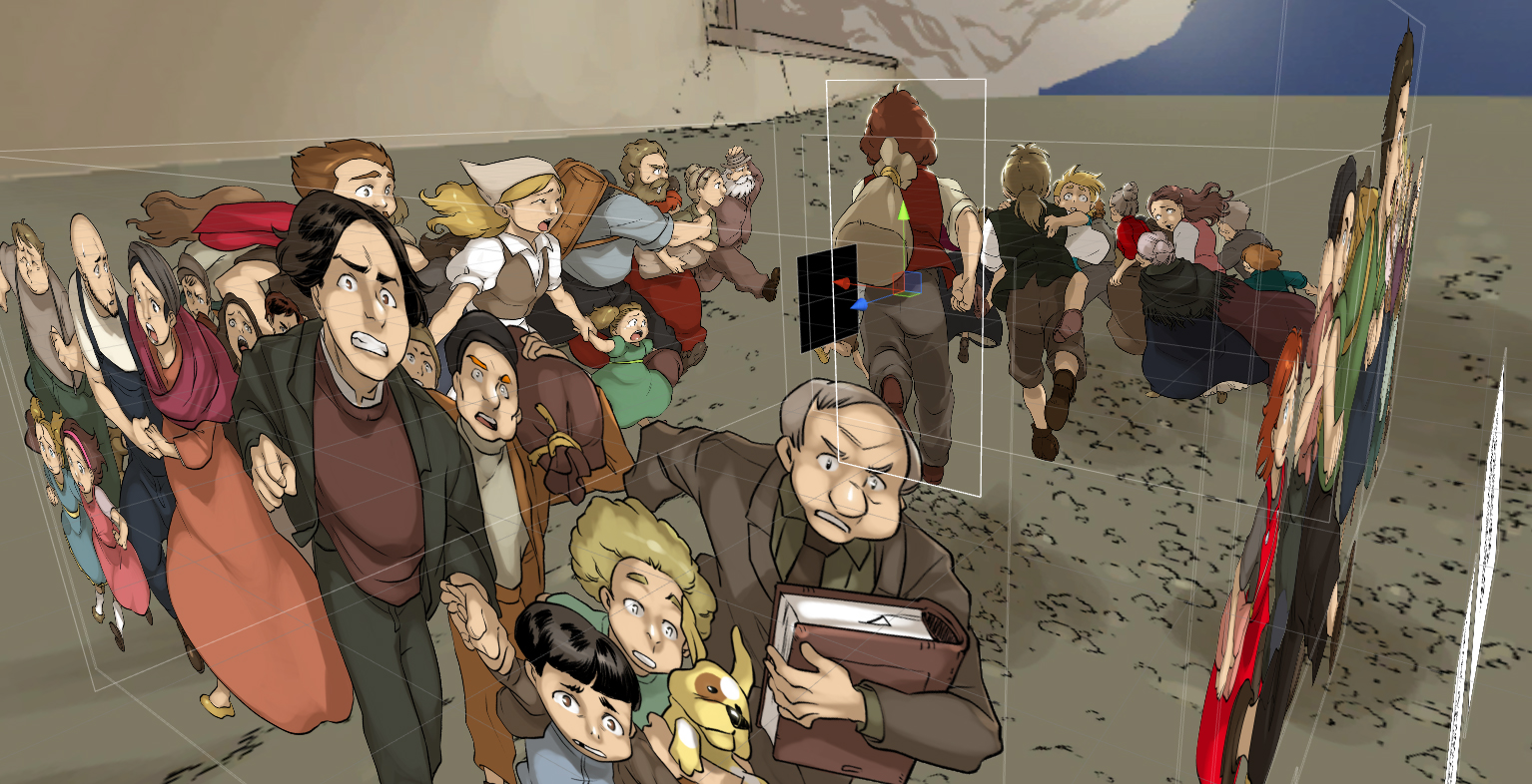 Surprisingly, the book was illustrated by artist Emilio Pilliu within Photoshop. The team assembled some in-house tools to make sure proportions of characters, environments and objects matched up correctly, and even tweaked the book within the Unity game engine to add stereoscopic layers to the various elements on a page. As you can see in the trailer, images are added into a 360-degree background.