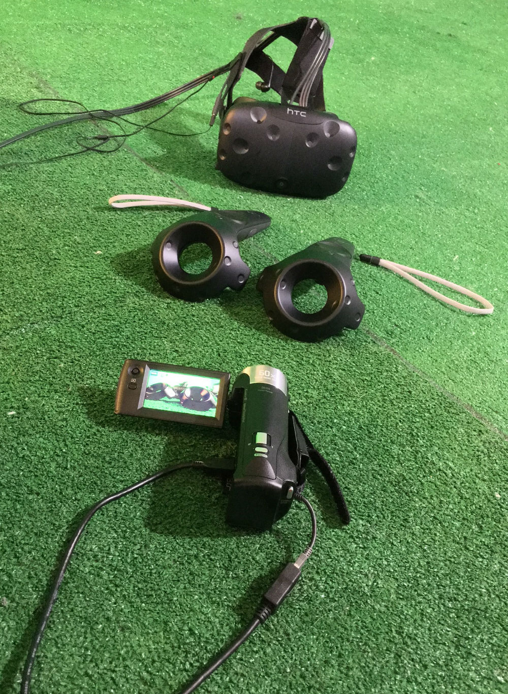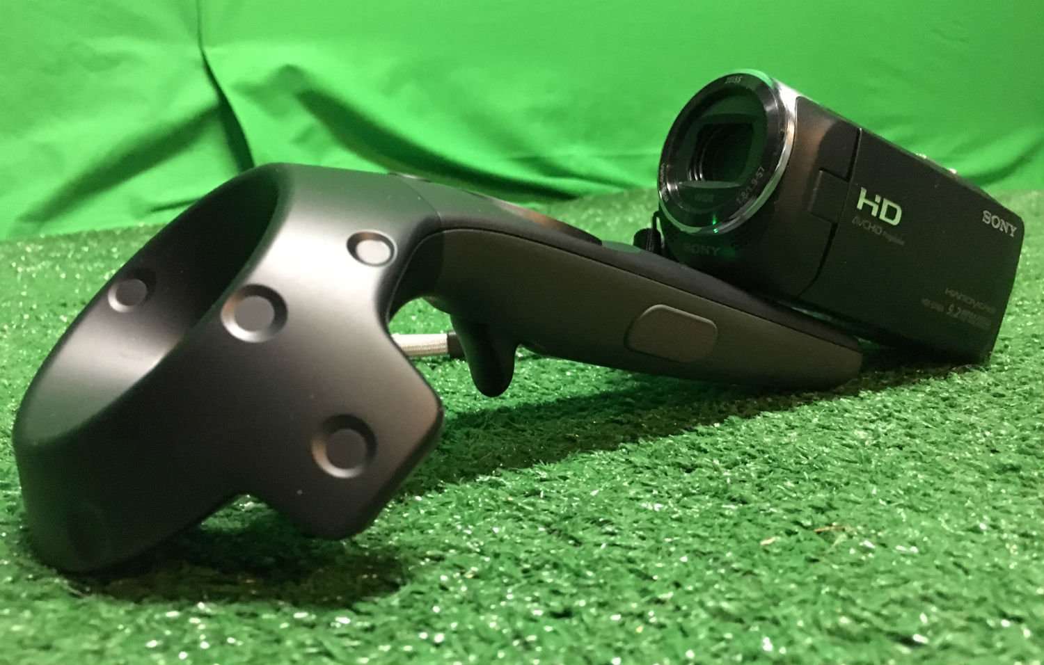 The first thing you’ll need is the equipment to capture mixed reality. In addition to the above items, you’ll need a VR-Ready PC and an HTC Vive. Of the above equipment, I bought the Handycam and the HDMI capture card first to simply prove it could work using a $15 green carpet from Home Depot as the backdrop. I bought the green screen and extension cords later after realizing I needed them.
