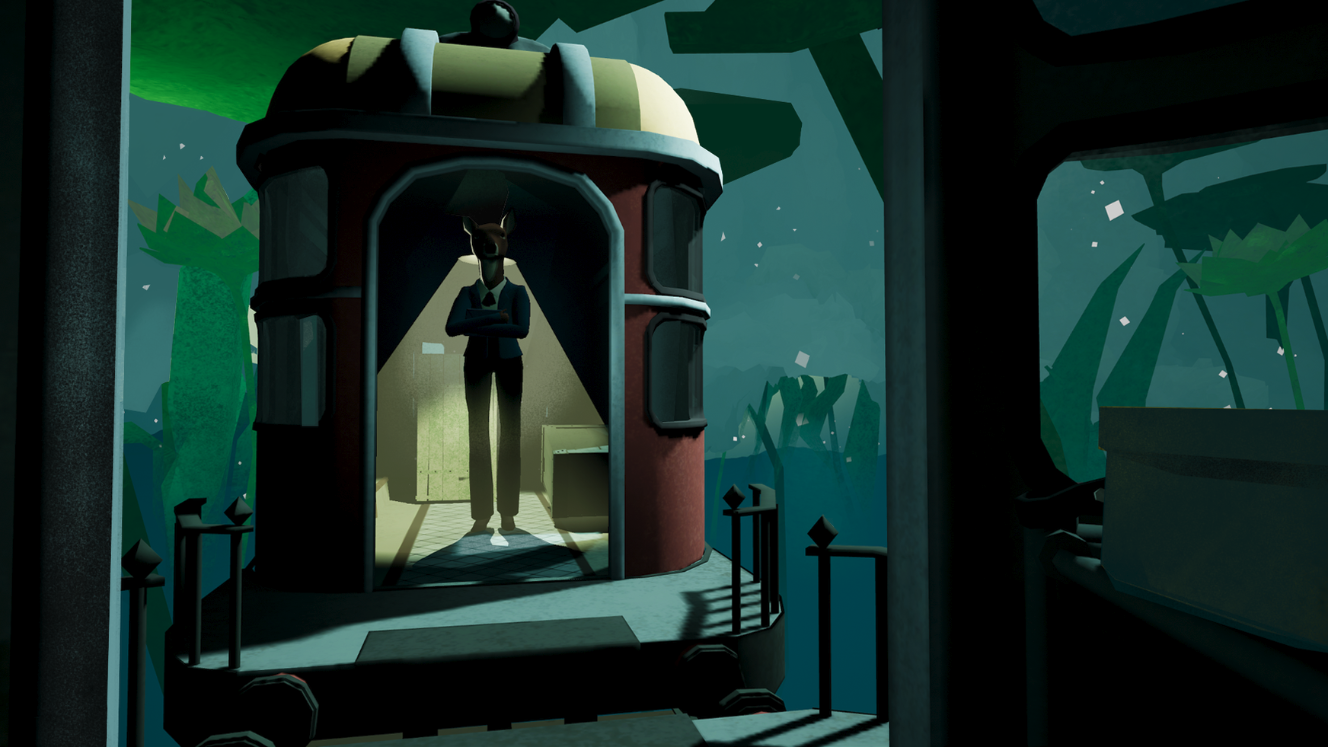 Another interesting part of the piece is that your subjects aren’t humans, but instead animals. A weary solider is played by a bear, for example, that lumbers over you as he sits in quiet reflection in his cabin. “Animals allow us to abstract the personas of the characters,” Volker explains. “Animals also have connotations and mythologies – stories about animals as personalities exist in many cultures. It made a lot of sense for us to employ that technique when we were building the world in Manifest 99. It lends another layer of mystery to have the characters be animals that complement their story.”