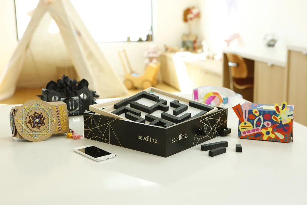 MAZE is available on the Seedling website for $59.99. The base game includes a wooden marble maze, 45 wooden wall blocks, 5 reusable paper grids, adhesive stickers, and 3 marbles. The MAZE application is available on iOS and Google Play.