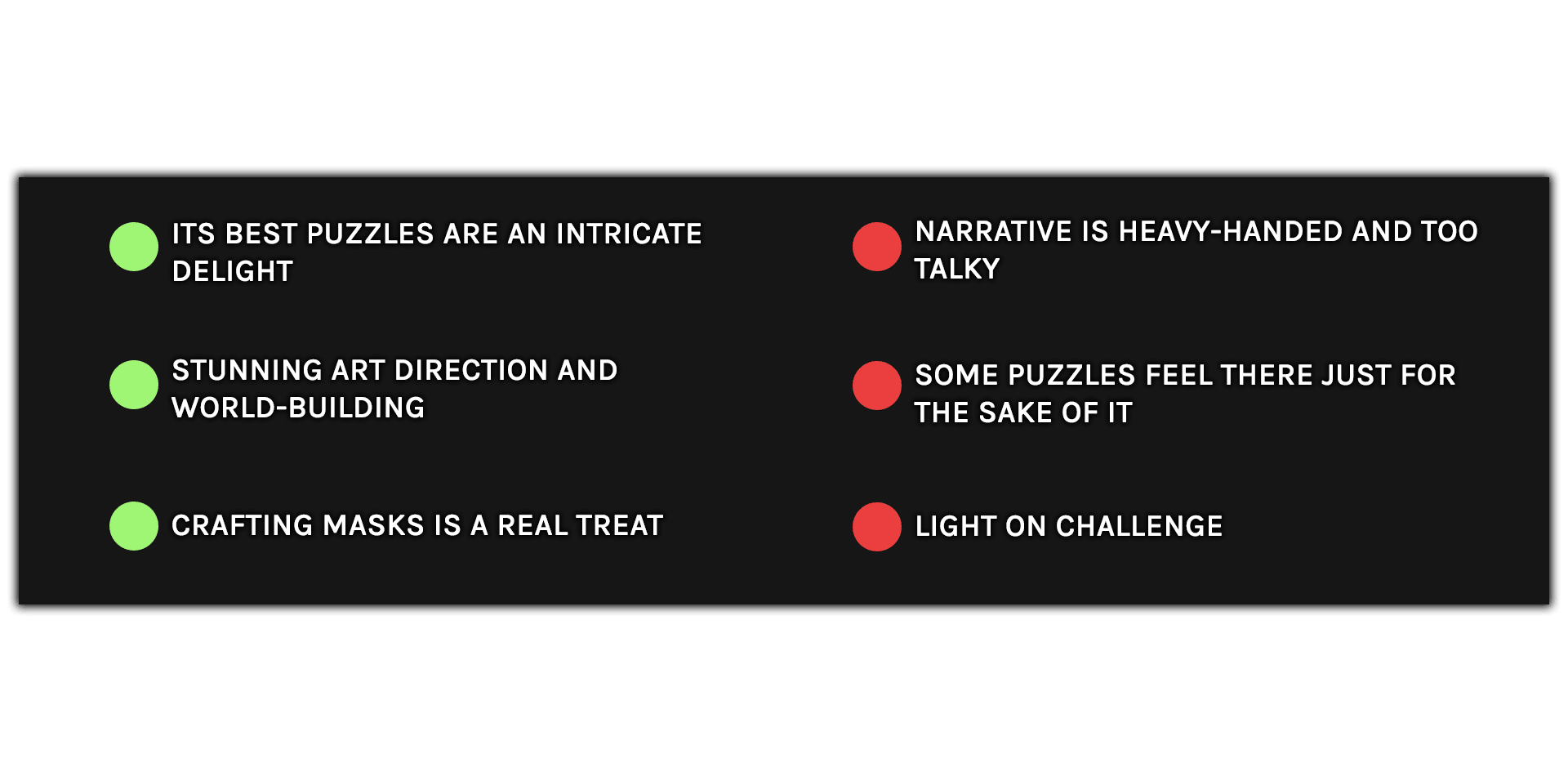 Maskmaker offers arresting atmosphere and intricate design, but it doesn’t have much new to say with its base mechanics. More in our Maskmaker review!