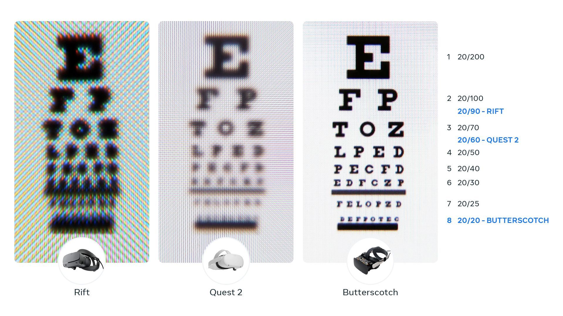 Butterscotch Varifocal is based on the original Butterscotch prototype Meta revealed last year. The Butterscotch prototypes deliver an angular resolution of 56 pixels per degree (PPD) of your vision, just short of the 60 pixels per degree generally accepted to be what the human eye can discern. That's almost three times the central angular resolution of Quest Pro, and double that of Bigscreen Beyond.
