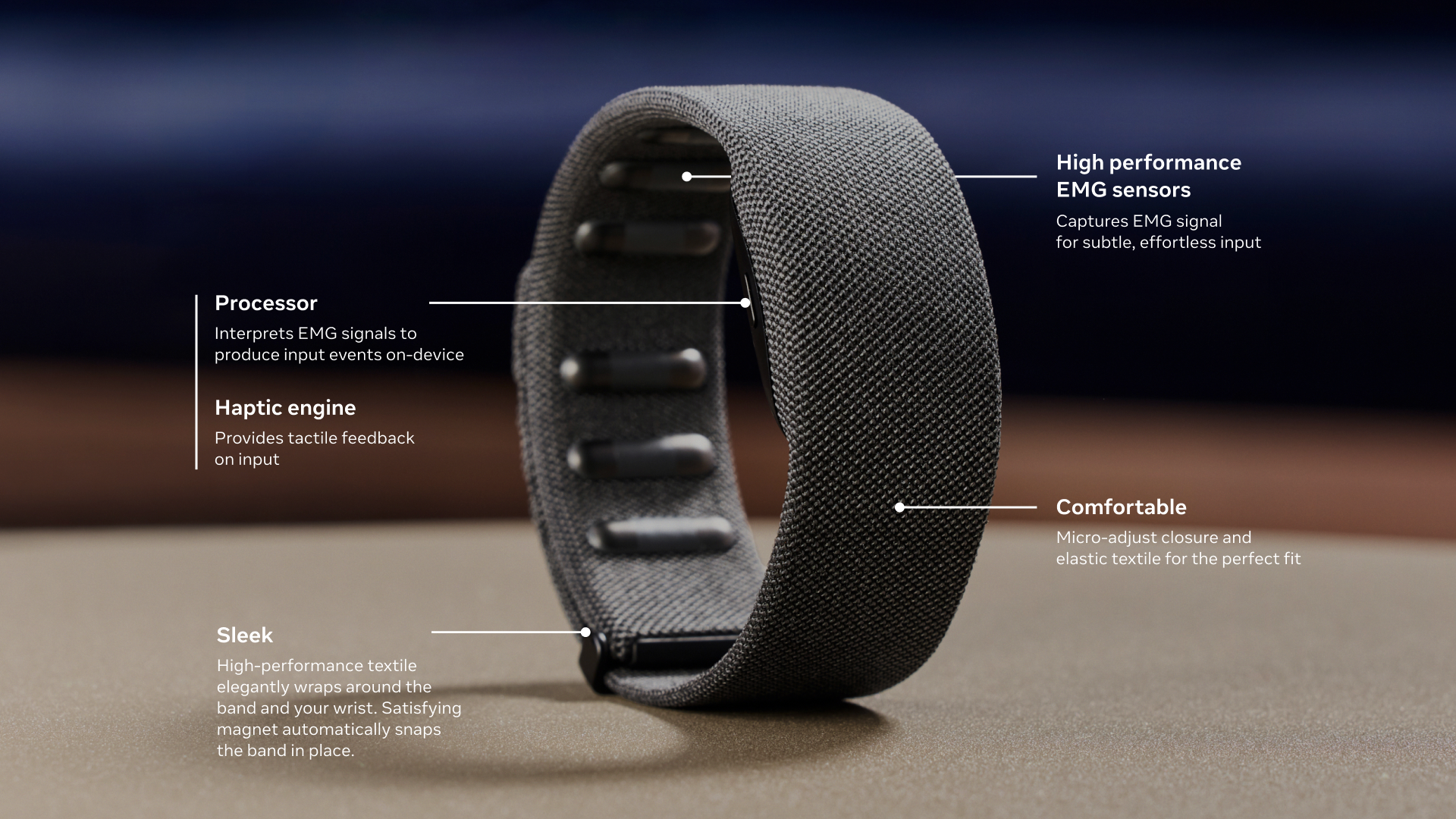 Meta has been working on the wristband since at least 2019, when it acquired a startup called CTRL Labs. The device works by sensing the activation of the muscles in your wrist which drive your finger movements, a technique called surface electromyography (sEMG). In theory, it enables precise finger tracking with very little power draw, and without the need to be in view of a camera.