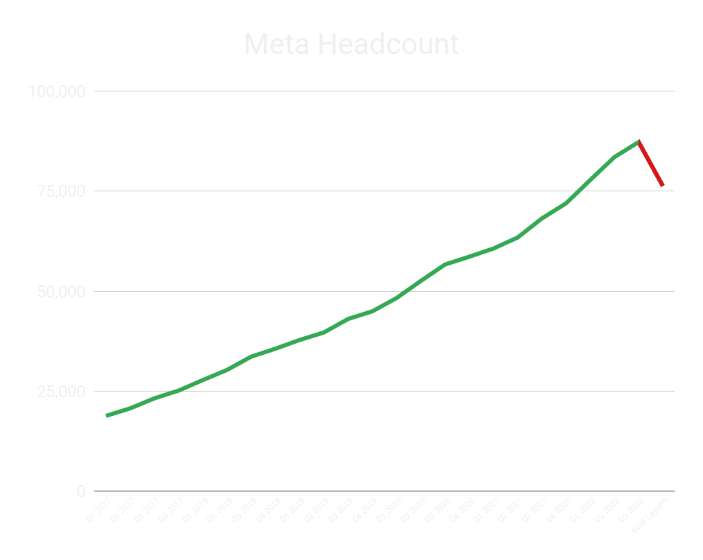 The layoffs mark the first time Meta (formerly known as Facebook) has reduced its headcount after many years of continual growth. The job cuts comes alongside other reductions at the company “including scaling back budgets, reducing perks, and shrinking our real estate footprint,” according to a statement from CEO Mark Zuckerberg.