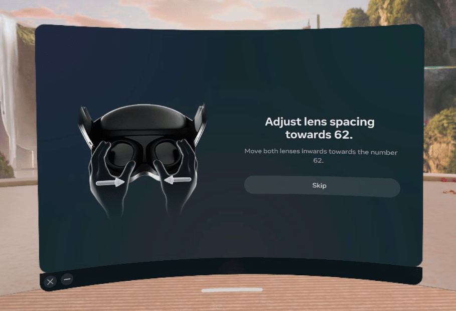 That’s not to say IPD adjustment on Quest Pro is entirely manual. Eye tracking is off by default for privacy reasons, but if you enable it you can open a Fit Adjustment guide that measures your IPD and tells you to adjust the lenses to this value. This guide is buried in the settings and sometimes appears when launching an app, but I’m not sure exactly what prompts it. I tried purposely setting my IPD wrong while eye tracking was activated and the guide often doesn’t appear. I’d love an option to bring this up every time I put the headset on with the IPD set wrong, or every time I launch an app for demos to friends and family.