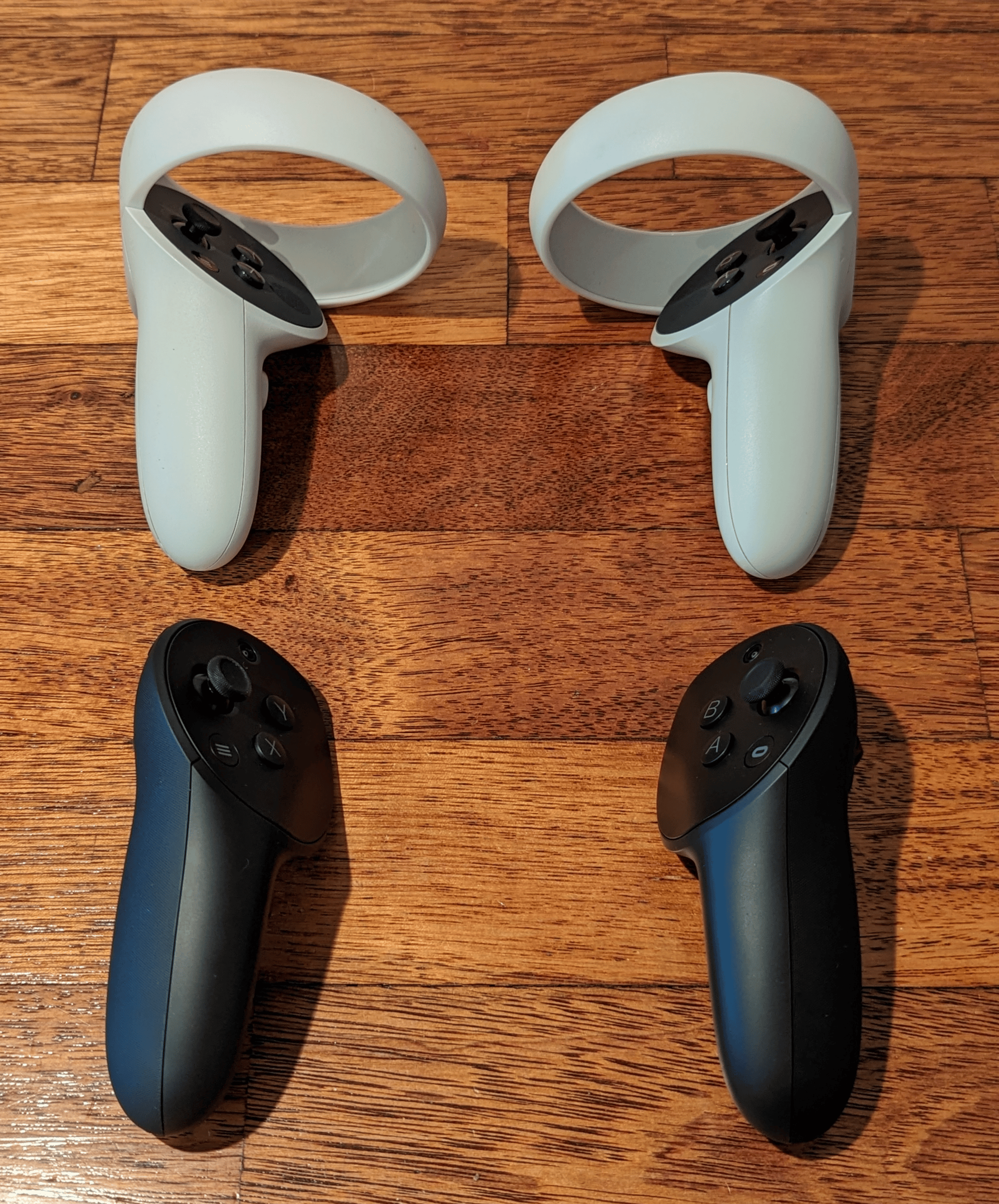 Touch Pro is self-tracking, ditching the tracking rings for onboard cameras. Tracking works the same way as headset tracking, and it’s just as rock solid – not once have I seen tracking break. You can also bring them much closer together at any angle since you’re no longer at risk of bashing plastic you can’t see in VR. That may sound unimportant, but it actually opens up entirely new precise hand-to-hand interactions not possible on any other headset (Pico 4’s controller design is an improvement over Quest 2, but there are still angles they bash together).