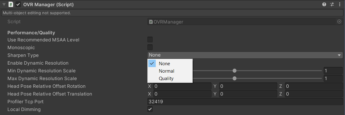 Quest Super Resolution will be available in the v55 Unity Integration SDK, set to release very soon. Unity developers will see a new 'Sharpen Type' setting in v55 with two options: Normal and Quality.