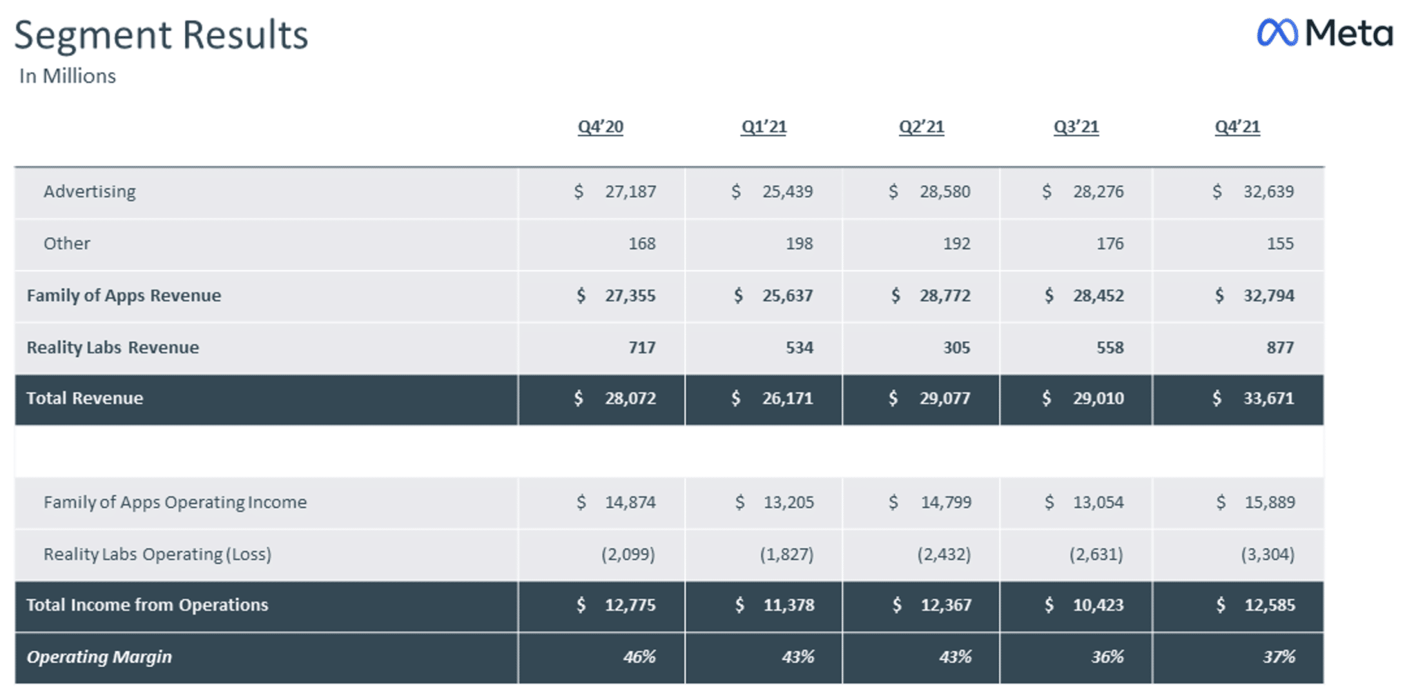 - Q4 2021 Reality Labs Revenue: $877 million