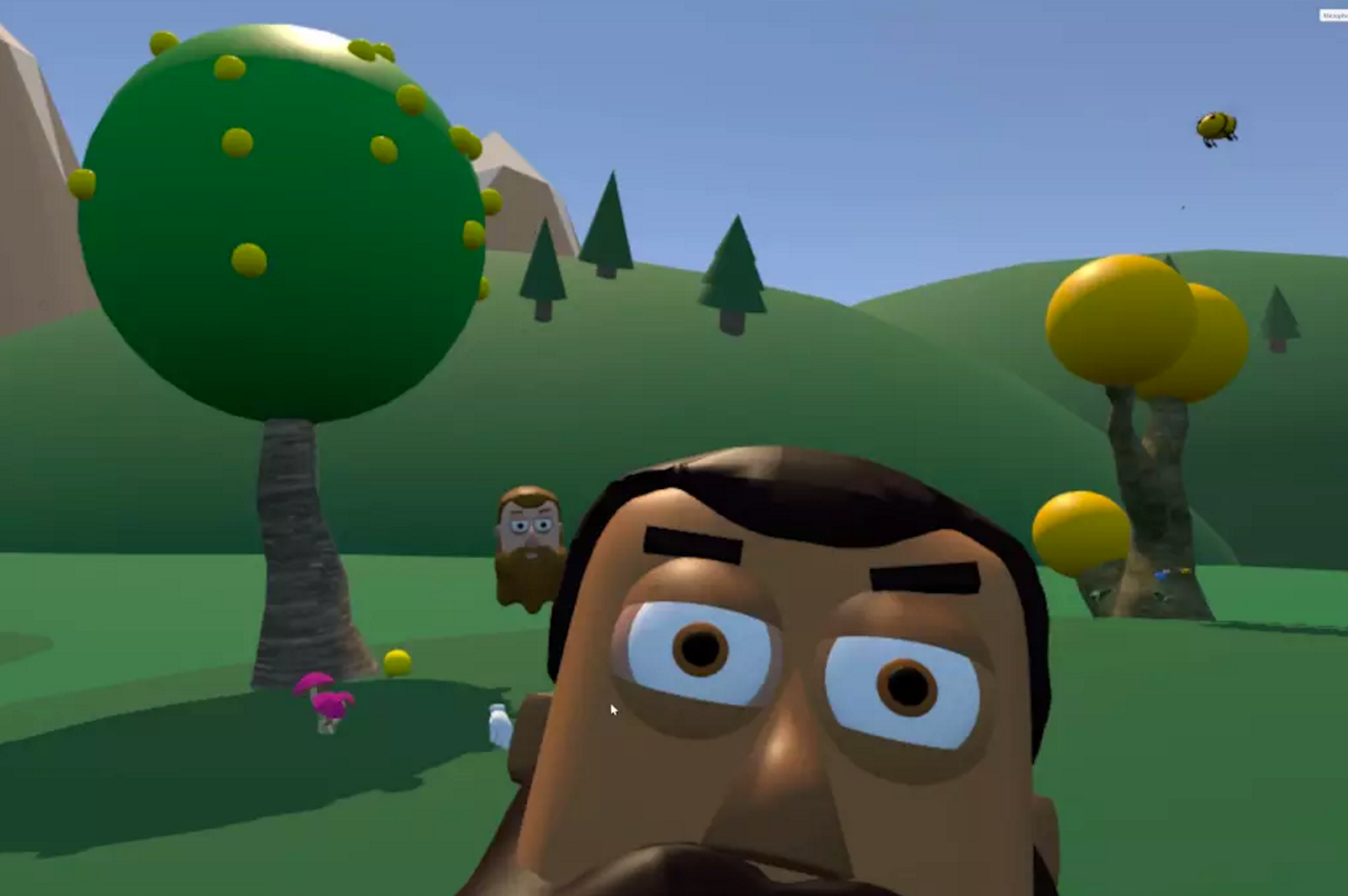 MetaWorld plays much like any other VR experience you’ve seen since the advent of consumer-grade VR technology. My demo took place inside of an HTC Vive headset, with roomscale tracking and two motion controllers. I could freely move around the room itself, or I could point at the ground and click to teleport larger distances. Each controller was digitally realized inside of the headset to represent two large cartoon-style hands, which allowed me to pick up and interact with objects in the world.