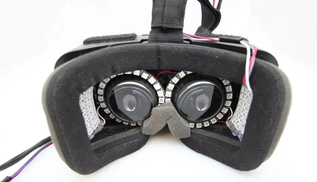 Crucially, the pair claim that their work helps to combat the dreaded simulator sickness, especially when employing a concept called Peripheral Countervection Motion. This is said to emit lights that simulate a “motion effect” in the user’s peripheral vision when moving in VR using a gamepad. In its research, the engineers noted that 11 of 14 people that tested this effect stated that it had reduced the effects of motion sickness.