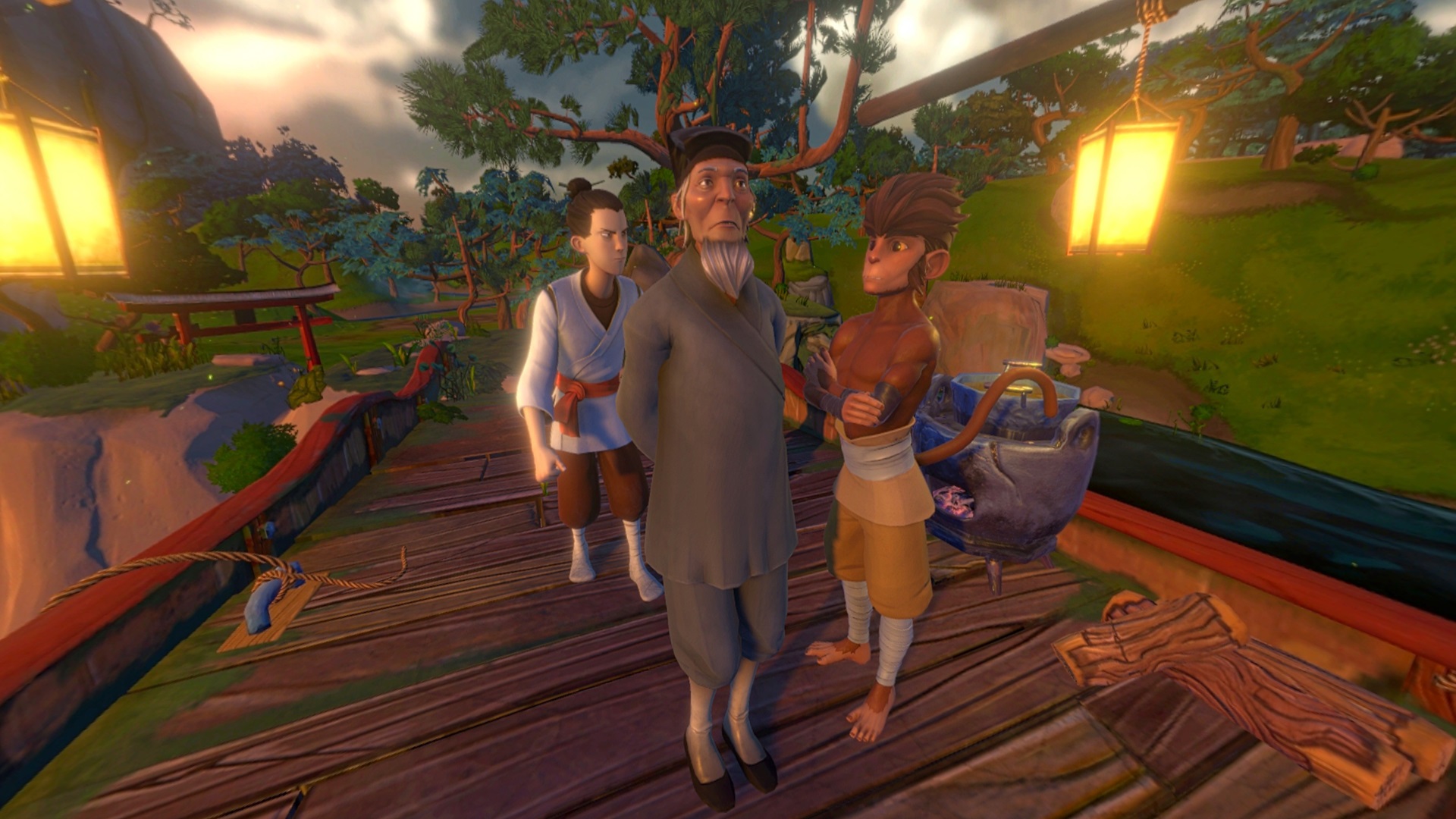 In this adaptation of the Monkey King you watch the story unfold before you as a floating observer in the sky. Much of it takes place while your point of view is stationary off to the side, in a tree, or somewhere slightly removed from the scene itself. While this is common for animated shorts in VR, I never really felt part of the story in this case.