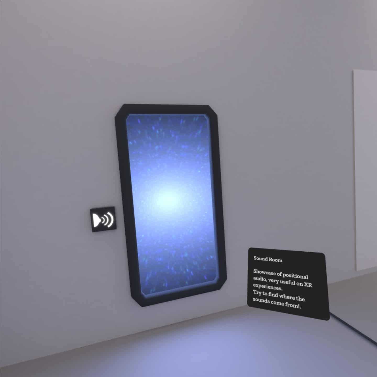 One of the three rooms you can teleport to is the “dark room”, which lets you hear positional sounds (crucial for VR audio). This is probably powered by Resonance Audio. The positioning was relatively precise, but not quite as pinpoint as I’m used to with Oculus Audio or Steam Audio.