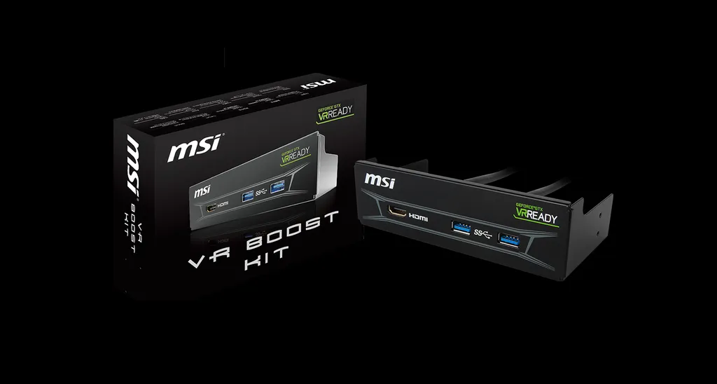 Based on the name, you might think that the VR Boost Kit would consist of some essential components to upgrade your PC and make it ready for headsets like the Oculus Rift and HTC Vive. In reality, the device is simply a handy – if completely unessential – 5.25 inch drive bay that acts as an extension cable of sorts for USB and HDMI ports, both of which are required for headsets. Specially, it has two USB 3.0 connectors and one HDMI connector, which the company notes can be used with any MSI VR Ready graphics card and motherboard.