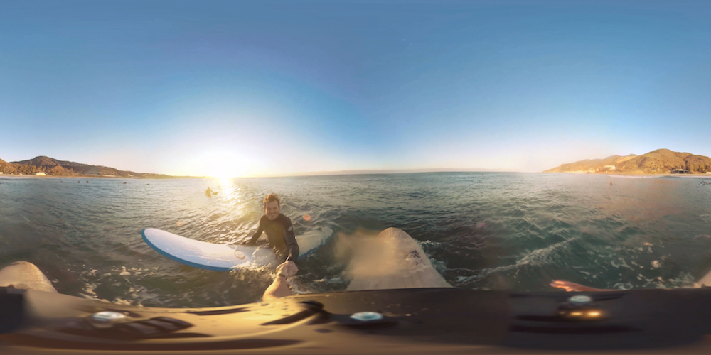 “For the surfing one we had a friend of the individual with MS, who is also a pro longboard rider, go out to Malibu. We mounted a 6 camera GoPro rig on a camera that we had him wear while he surfed. We then Stitched that together and stabilized the footage so its viewable without getting sick.”