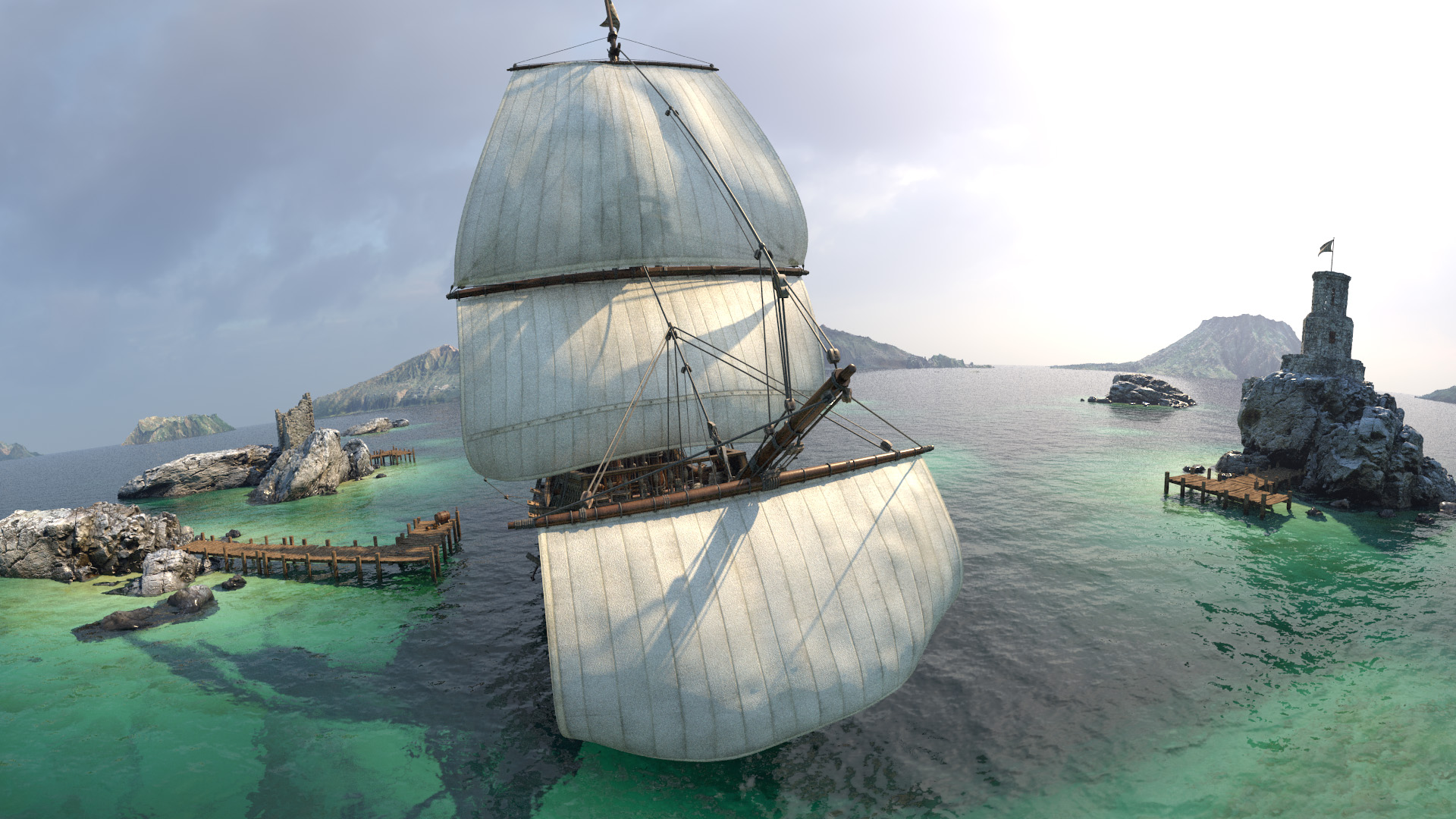 This is a full CGI cinematic VR experience where you get to explore a ghost ship.