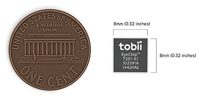 The new products from Tobii, which include the smaller-than-a-penny EyeChip at its core, are said to be the 6th generation platform from the company and the first meeting the low power requirements that might see integration into consumer devices. The chip powers a module featuring infrared sensors and illuminators to track eye movements.