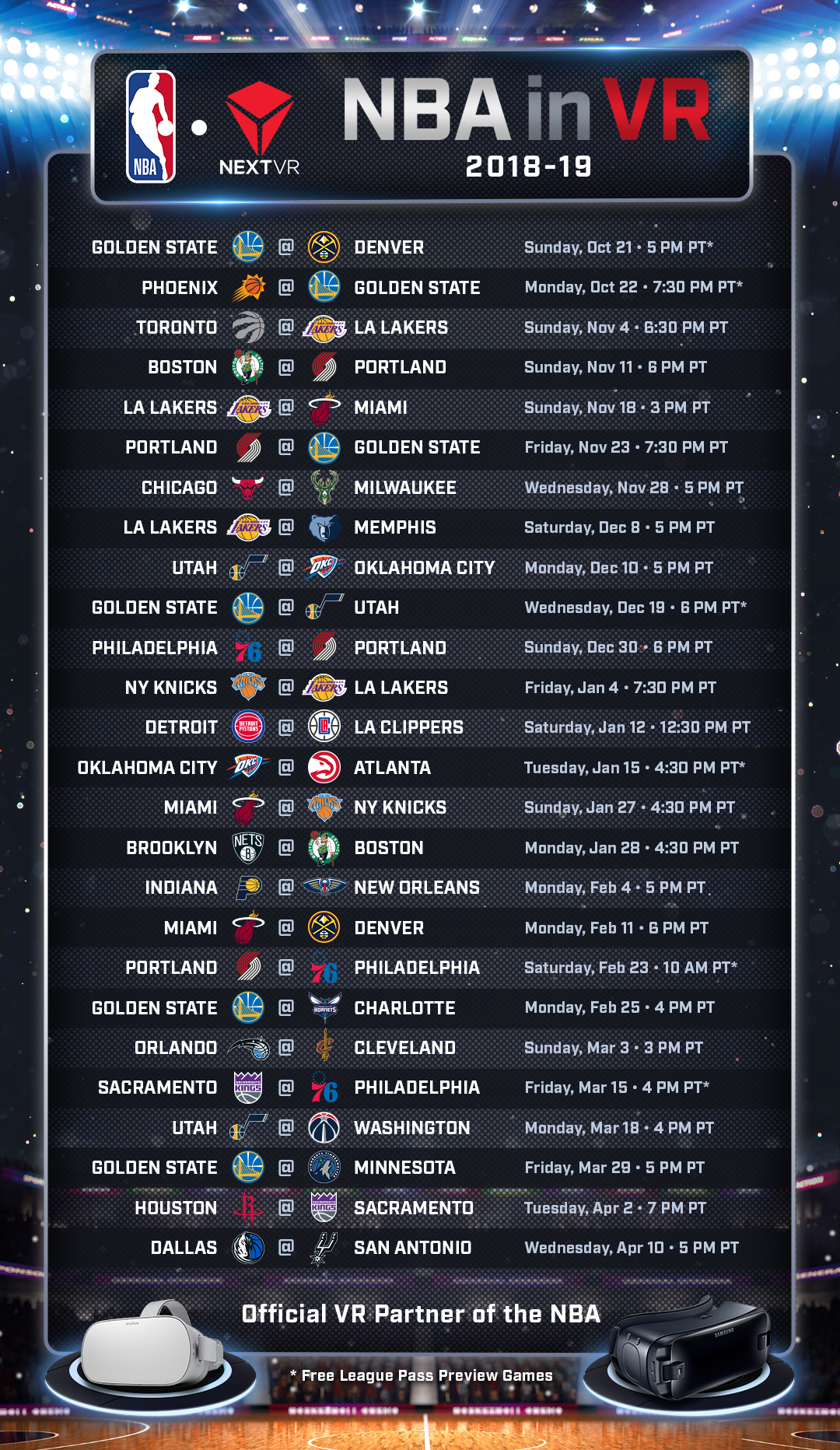 Here’s the breakdown of the NextVR offering for the 2018-2019 season: