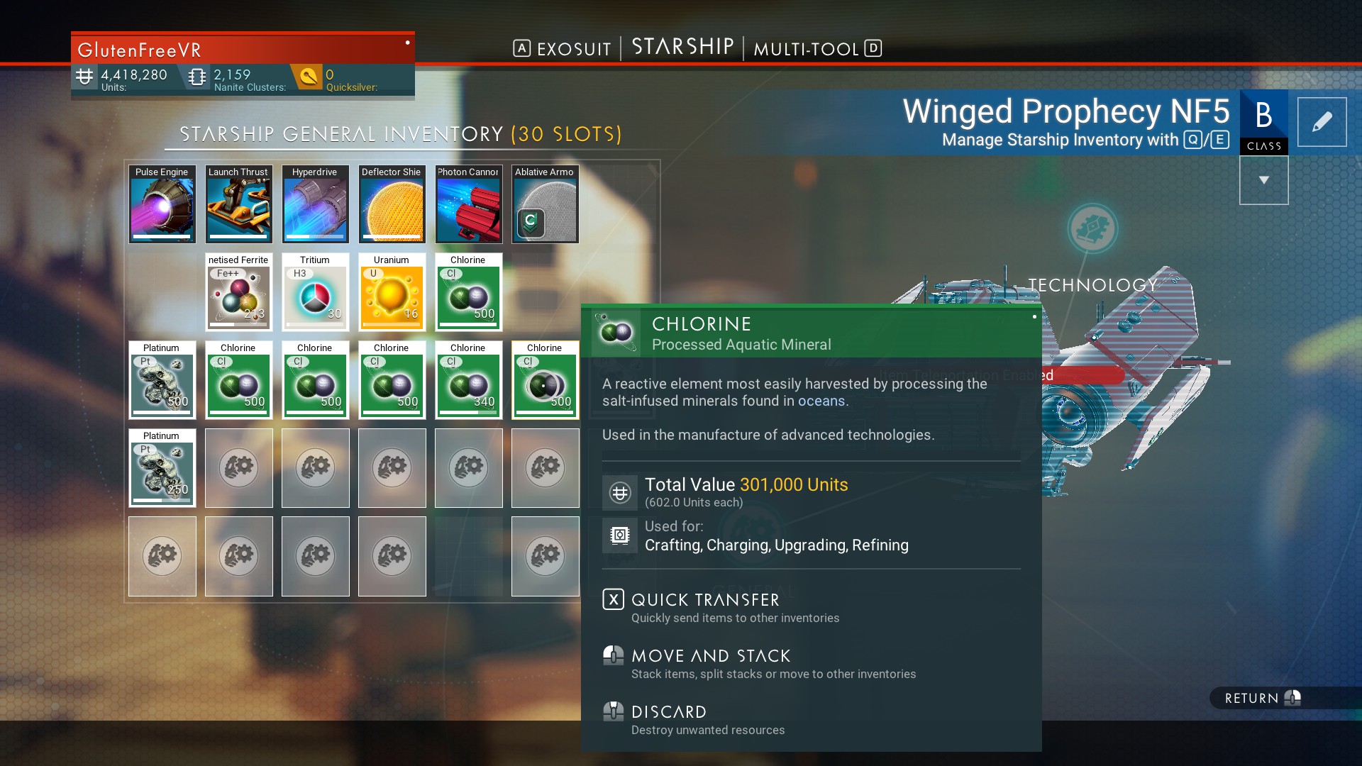 One of the most lucrative materials in No Man’s Sky is chlorine, which sells for 602 units per piece. Accumulating and selling chlorine can amass hundreds of thousands of units quite quickly, and it’s actually surprisingly easy to get chlorine early into a playthrough. You can find chlorine in various plants and rocks laying around, but it is concentrated in ‘Organic Rocks’ strewn about certain planetary surfaces. You can also mine salt and refine that down into chlorine at a rate of 2:1.