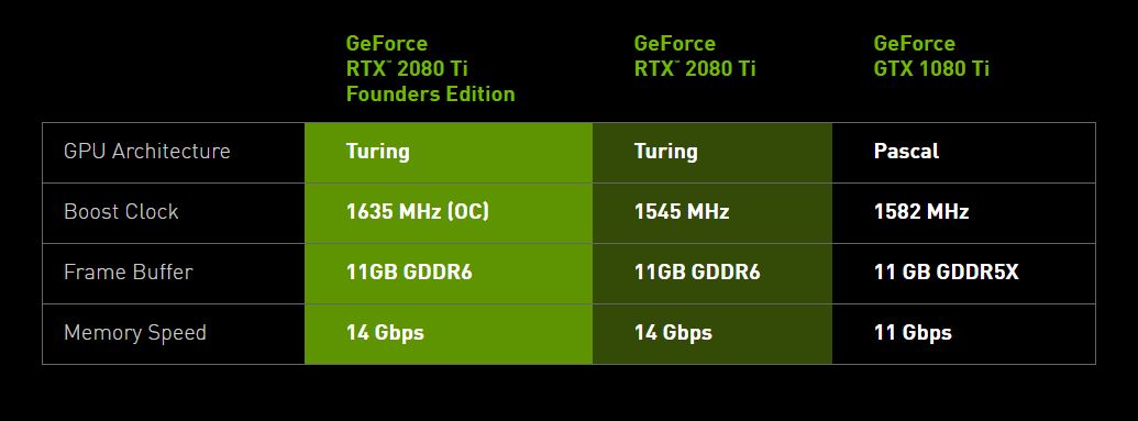 Here’s a look at how the GTX 1080 Ti and RTX 2080 Ti compare: