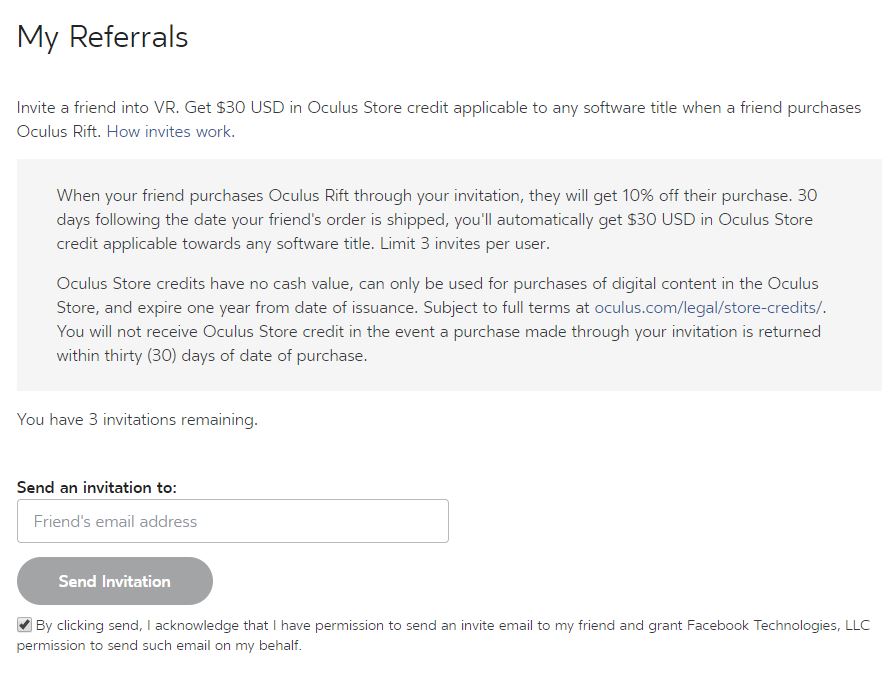 Of course, there are some restrictions here. For starters, it’s seemingly USA-only for now, so both you and your friend will need to be in the USA. Additionally, each Rift owner can only refer up to 3 friends, however technically those friends could refer even more.