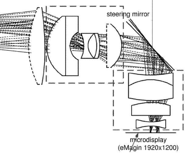 One diagram in the patent’s supporting documents mentions the resolution and potential supplier of the inset display. It is marked as a 1920×1200 microdisplay from eMagin. This is likely the eMagin WUXGA, which the company claims is the highest resolution OLED microdisplay in production.