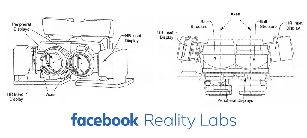 Facebook has been awarded a patent for a head mounted display (HMD) which combines a large low resolution display and small high resolution display projected to where the user’s eye is pointed to achieve ‘retinal’ resolution.