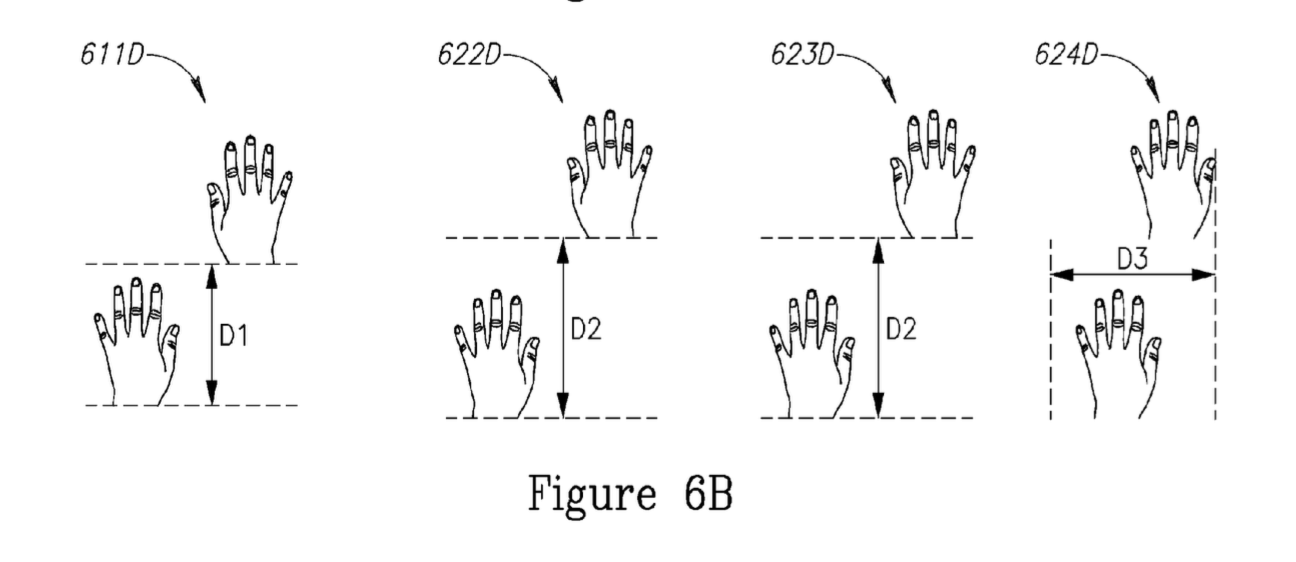 Seemingly taking inspiration from Minority Report, the patent describes an example of how the movement interaction would work. By measuring the distance between your hands when doing a “move” gesture, your speed and distance correlates to how far you spread your hands from each other.