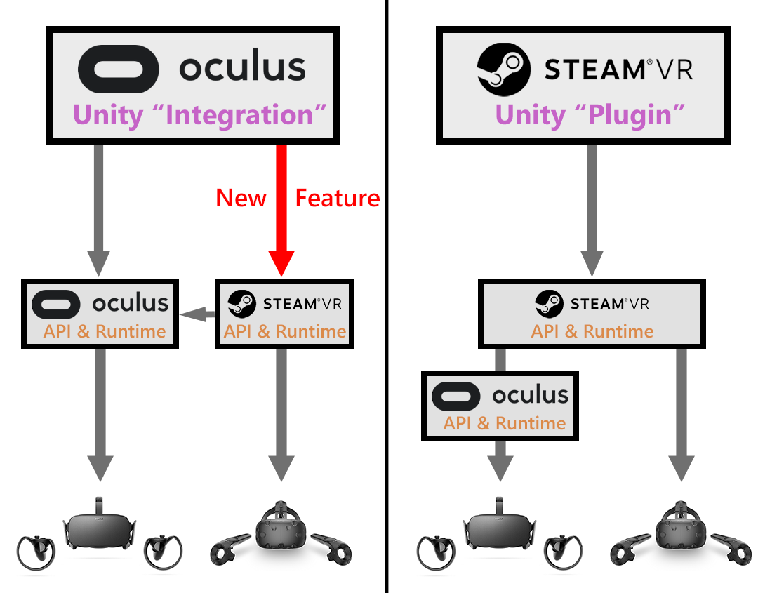 The problem is, the SteamVR Plugin does not directly support the Oculus API, and Oculus Store requires submissions to have direct Oculus API support to be approved. If a developer wanted to release on the Oculus Store for Rift and Steam for Rift and HTC Vive, they had to use both packages, or the generic Unity XR framework which is generally considered inferior to both. Using both packages takes extra development time and adds extra complexity to the project.