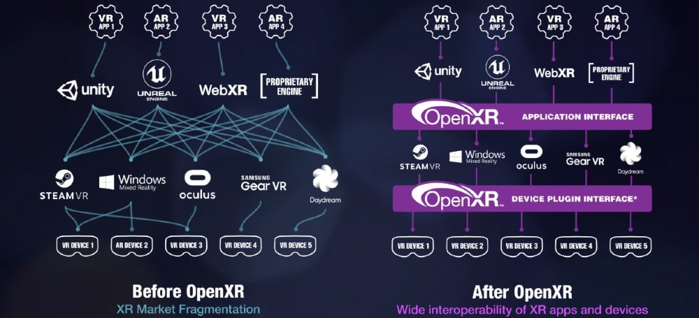 The API allows developers to write code which runs on any and all VR headsets. Until now, developers have had to write different code for different VR headsets, depending on the headset’s native runtime platform.