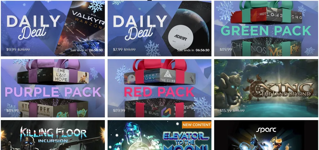 As expected, there are also a handful of bundles on offer, taking advantage of the Oculus Store’s new dynamic bundle system, which will discount any games you already down. Each $90 pack includes seven games including some of Rift’s best titles like Lone Echo, Superhot VR and The Mage’s Tale. Add in the usual daily deals (you can get EVE: Valkyrie for just $9.99 at the time of writing) and you’ve got yourself a pretty good holiday package.