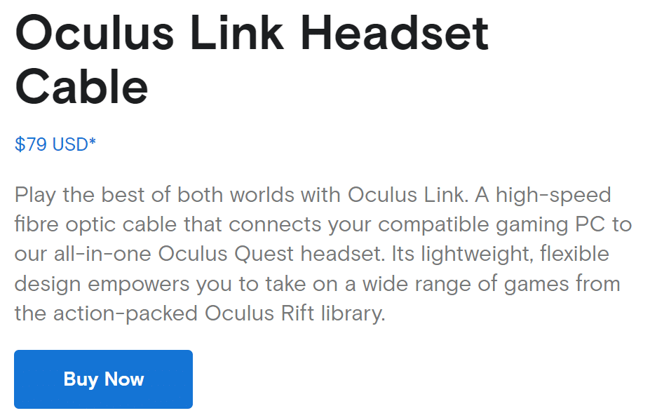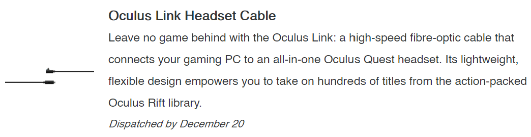 The official cable was announced alongside the feature itself at Oculus Connect 6, with Facebook stating that it would arrive later this year. Until now, Quest owners using Link have been using third party cables, such as the officially recommended Anker product.