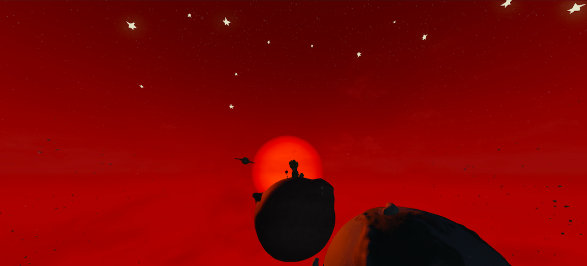 The story itself is fairly simple, we are introduced to our main character, who looks at this stage a lot like the main character in The Little Prince, when he pops out of one of the craters on the moon. Walking along the surface, the planet rotates slightly with him leading to the crescendo – where he meets his friend, the Rose. What happens next is an adorable exchange that I will spare you the spoilers on.