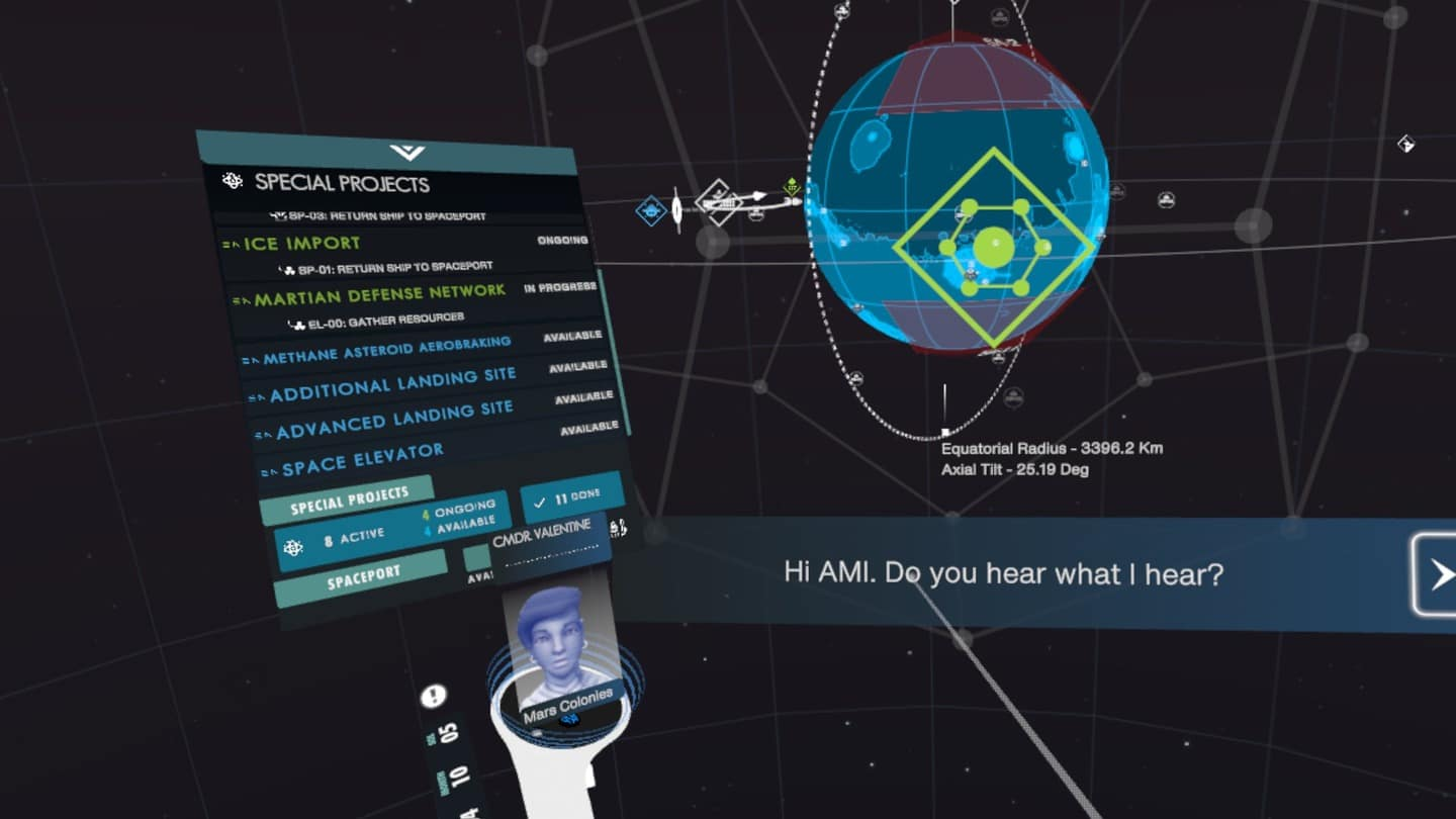 In Per Aspera VR, Earth can no longer support life, so mankind has committed to making Mars its new home in a bid to preserve humanity. That’s where you come in, playing as a sentient artificial consciousness called AMI. You’ve been sent to transform Mars from a barren rock into a flourishing bounty by overseeing a planetwide terraforming operation.