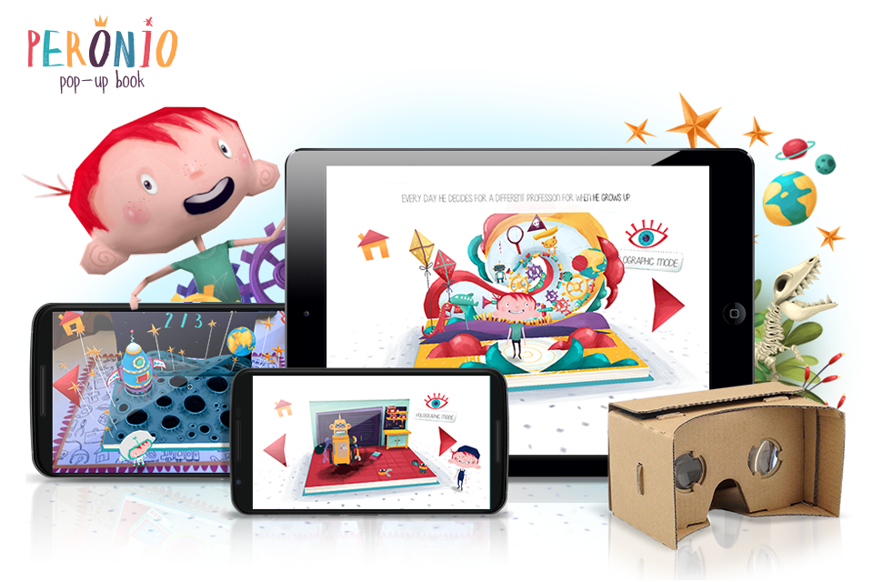 Peronio is, according to press release communication, “a game that tells the story of a boy who cannot decide what he wants to be when he grows up.” It tells this story through an innovative combination of technologies. Through the use of augmented reality, it can display holographic images on a table to interact with, you can use it on a tablet simply as a virtual pop-up book, and you can also even check it out in VR with both Google Cardboard and Gear VR versions through your phone’s camera. You get to actually interact with Peronio on the pages with your hands and gaze.