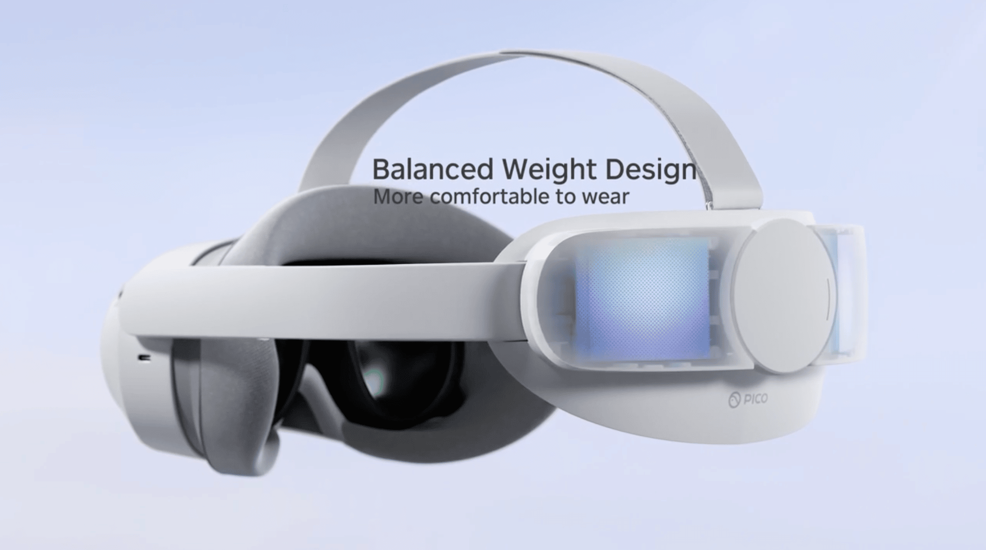Taking in the headset from all angles, the new form factor is the most obvious and immediate change compared to the Pico Neo 3 Link . The front of Pico 4 is much slimmer than its predecessor – largely due to the switch to flat pancake lenses – and overall Pico say it sports a reduction in weight, down to 586g (with headstrap included) from 620g on the Neo Link 3.