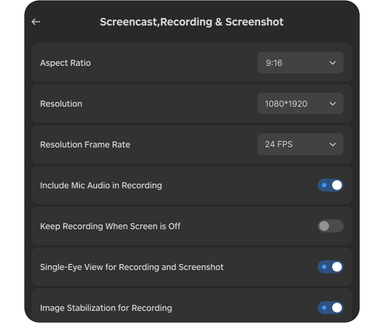 Image stabilization for recording is now enabled by default, and like on Quest a popup notification will now be shown when stopping recording so you can quickly preview the clip.