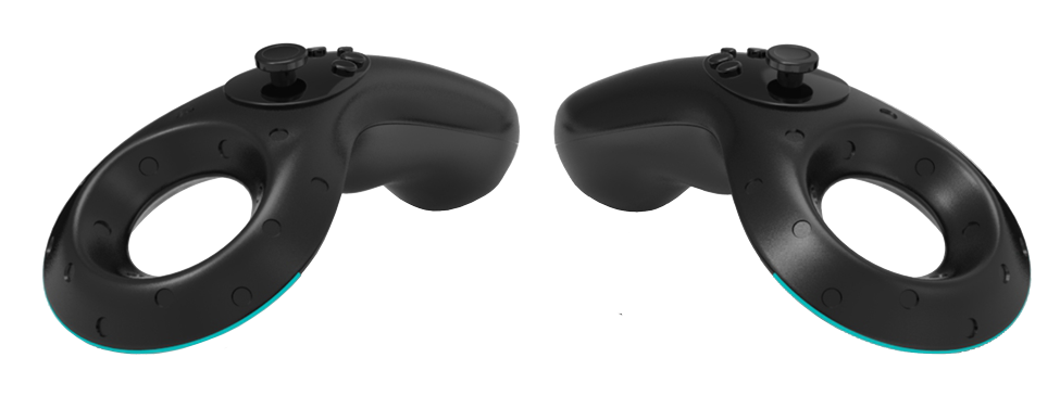 In its 2017 Kickstarter for the “8K” ultra-wide FoV VR headset, Pimax promised simple VR controllers for $200 extra, with buttons, a thumbstick, and trigger, however the ergonomics did not seem to match more advanced VR controllers like Oculus’ Touch and Valve’s “Knuckles” prototypes.