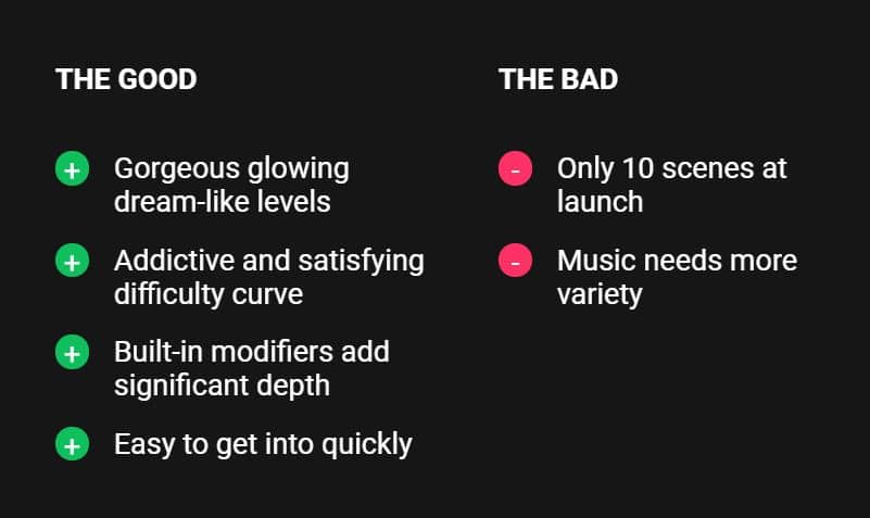 I find most of the songs pretty enjoyable but definitely take a listen to the videos on this page and see if there’s a fit with your tastes before committing to a purchase. I find the songs that aren’t my favorites can still be fun because the level designs come with enough surprises to make them challenging in slightly different ways.