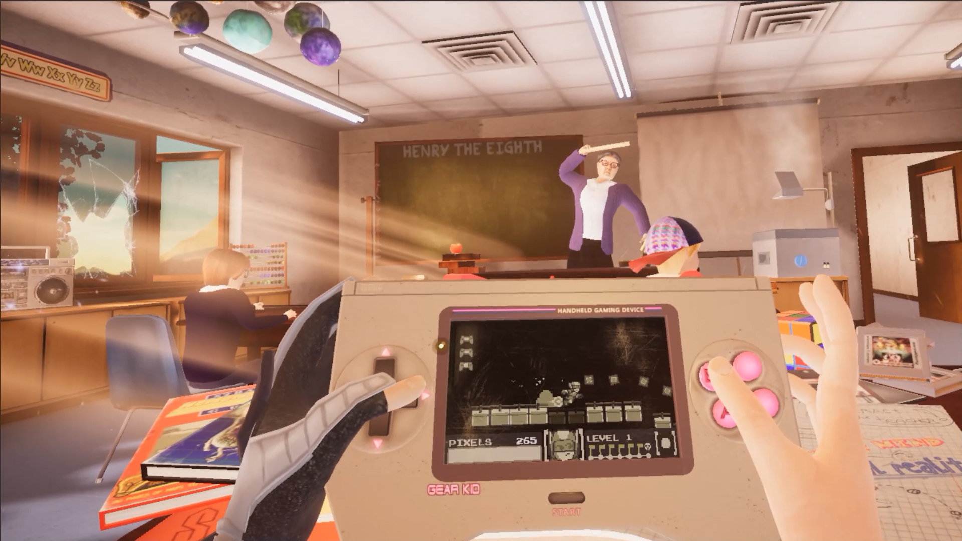 Some of the VR interactions could have used some work as well. For example, during some of the levels you’re sitting in class playing the Gear Kid under the desk secretly. If the teacher spots you then you run the risk of getting thrown into detention, which can be a real bummer. To avoid this you need to shoot spitballs at different items around the class to distract her. It works well, but actually shooting the spitball requires looking at it on your desk for a few seconds, waiting, then looking at something in the world, waiting, and then having it shoot automatically.