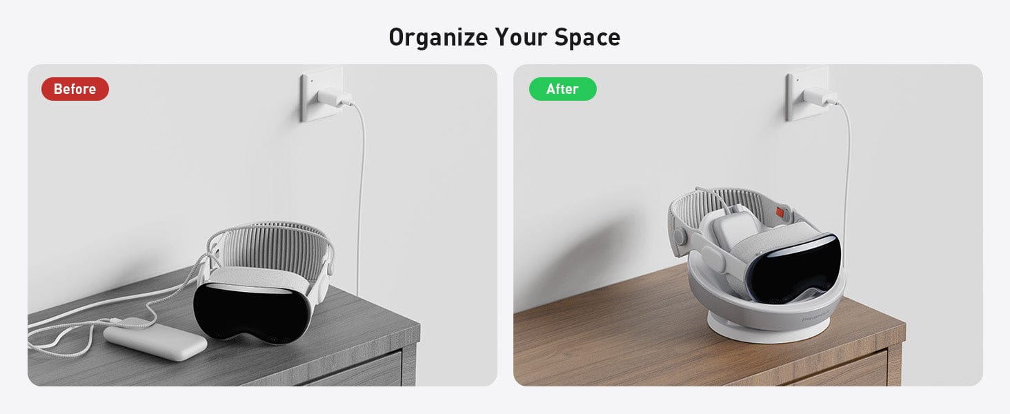 It looks to be an elegant solution for storing and charging Apple Vision Pro at home.