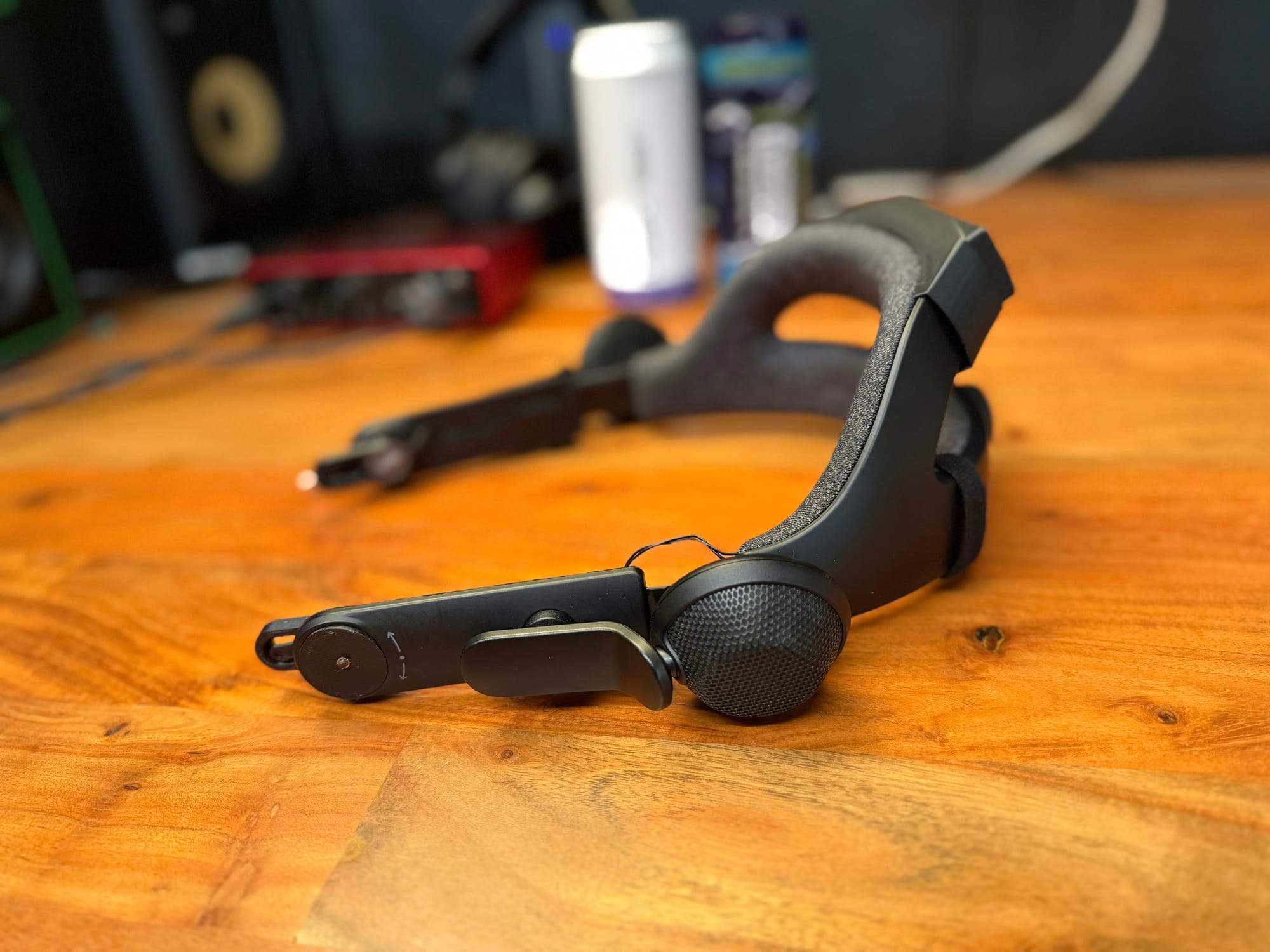 The key electronic components of the kit are a custom DAC, based on the open-source project Picoamp, and a tiny uninterruptible power supply (UPS) with a lithium-ion battery, all housed in a plastic enclosure that clips on to the back of the strap. The DAC passes the audio from the Beyond to the Index's speakers, via thin wires you tuck under the strap which connect to pogo pins in the side adapters, and the UPS is needed because to play very loud sounds, the Valve Index drivers draw more power than Beyond provides via its USB-C port.